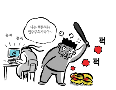 À̰ÍÀÌ ¹Ù·Î ºÒÆíÇÑ Áø½ÇÀÌ´Ù. Ȥ½Ã ¿ì¸®´Â ¿¹´É ÇÁ·Î±×·¥À» º¸¸é¼ ³¥³¥´ë´Ù°¡ ´ëÅë·ÉÀ» ¸ð¿åÇÏ´Â ±Û¿¡ ¡®Ãßõ¡¯ ´ñ±ÛÀ» ´Þ°í, ±× ±ÛÀ» ´Ù¸¥ °÷À¸·Î ¿Å°Ü ³õ´Â °Í¸¸À¸·Î ¡®ÇൿÁÖÀÇÀÚ¡¯°¡ µÈ °Íó·³ Âø°¢Çϰí ÀÖ´Â °ÍÀº ¾Æ´Ò±î? ±×·± Âø°¢¿¡ Á¤´ç¼ºÀ» ºÎ¿©ÇÏ´Â ¡®Æ®À§ÅÍ Áö½ÄÀΡ¯ÀÇ ¸î ÁÙÂ¥¸® ³íÆò¿¡ ȯȣÇϸé¼!