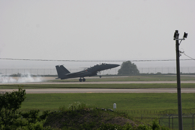 ±º»ê¹Ì±º±âÁö Àα٠ÁֹεéÀÌ ÀüÅõ±â·Î ÀÎÇÑ ¼ÒÀ½À¸·Î ½É°¢ÇÑ °Ç°»ó ¹®Á¦¸¦ °Þ°í ÀÖ´Â °ÍÀ¸·Î µå·¯³µ´Ù. »çÁøÀº ±º»êºñÇàÀå¿¡¼ Âø·úÈÆ·Ã ÁßÀÎ ¹Ì±ºÀüÅõ±â <»çÁø Ãâó : Âü¼Ò¸®> »èÁ¦µÈ ±âÁöÃÌÀÇ »çȸÀû ¸Æ¶ô
